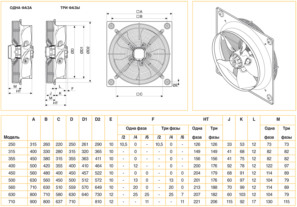 В зависимости от модели, вентиляторы комплектуются 2, 4, 6, 8 или 12 полюсными