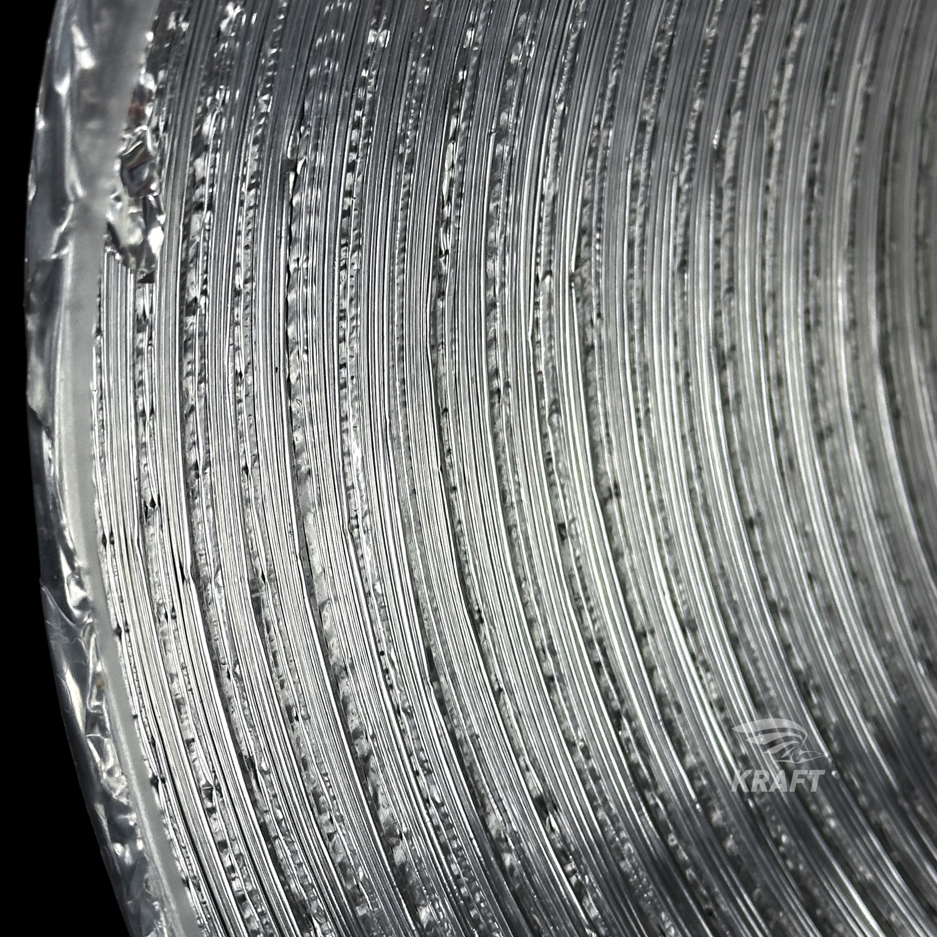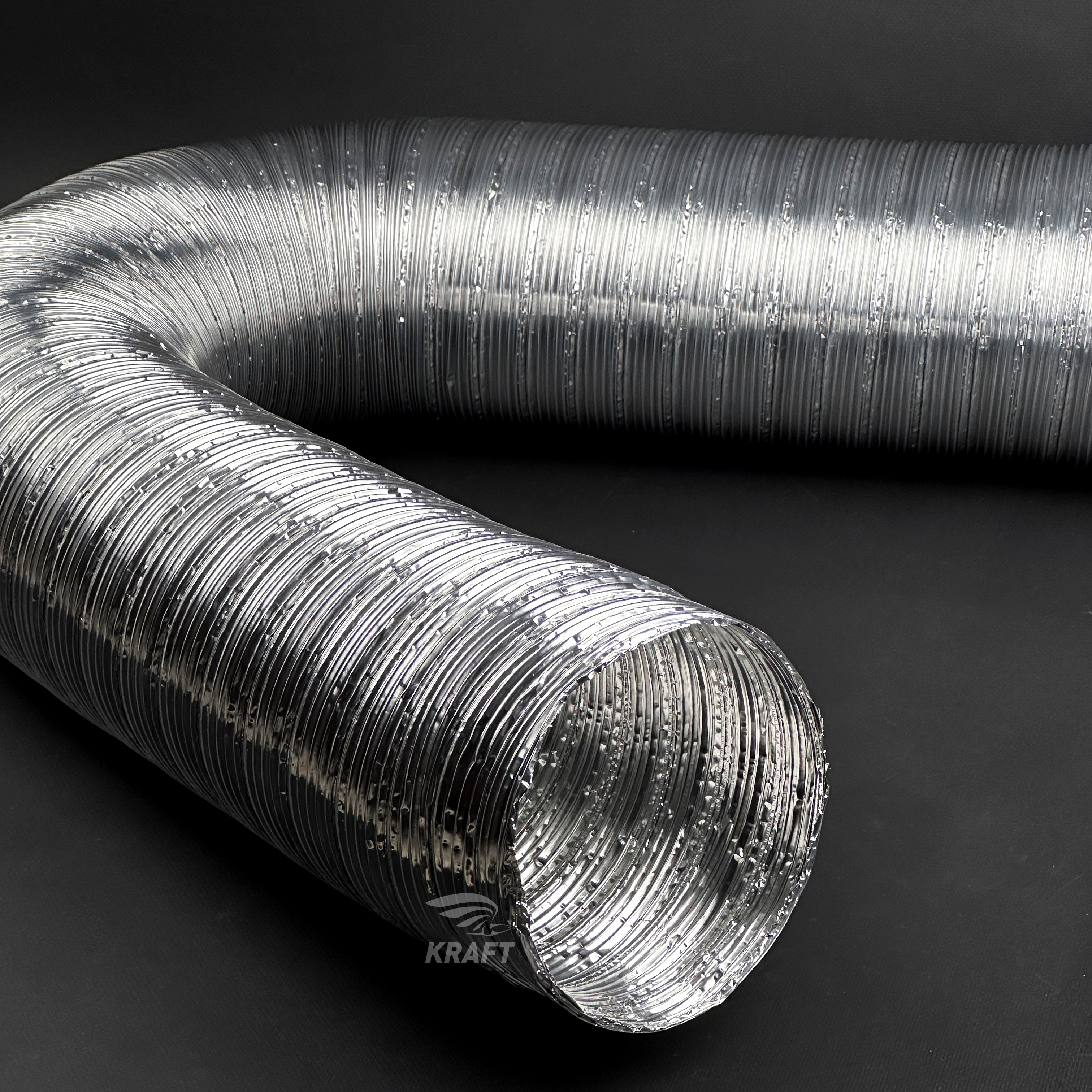 Толщина фольги составляет 60мкм, что позволяет использовать алюминиевые полужёсткие воздуховоды при температуре до +250°С